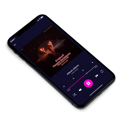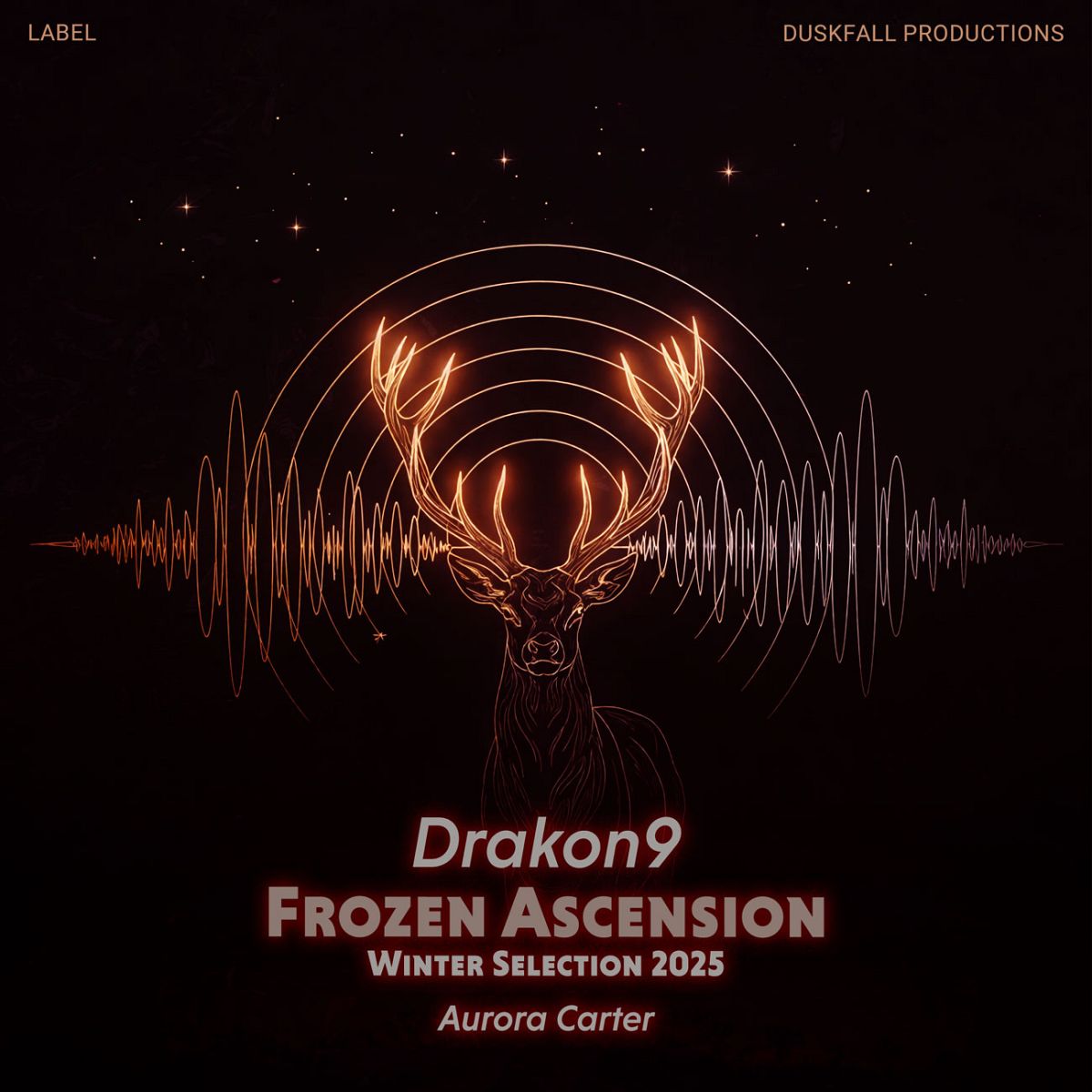 “A stylized deer with antlers emits glowing lines, set against a dark background with a soundwave pattern.”