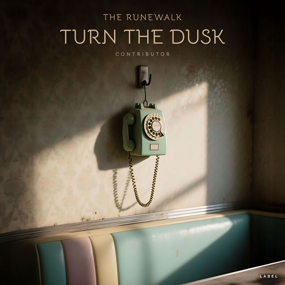 “A vintage rotary phone on a wall above a booth seat, bathed in soft light with a serene, nostalgic ambiance.”
