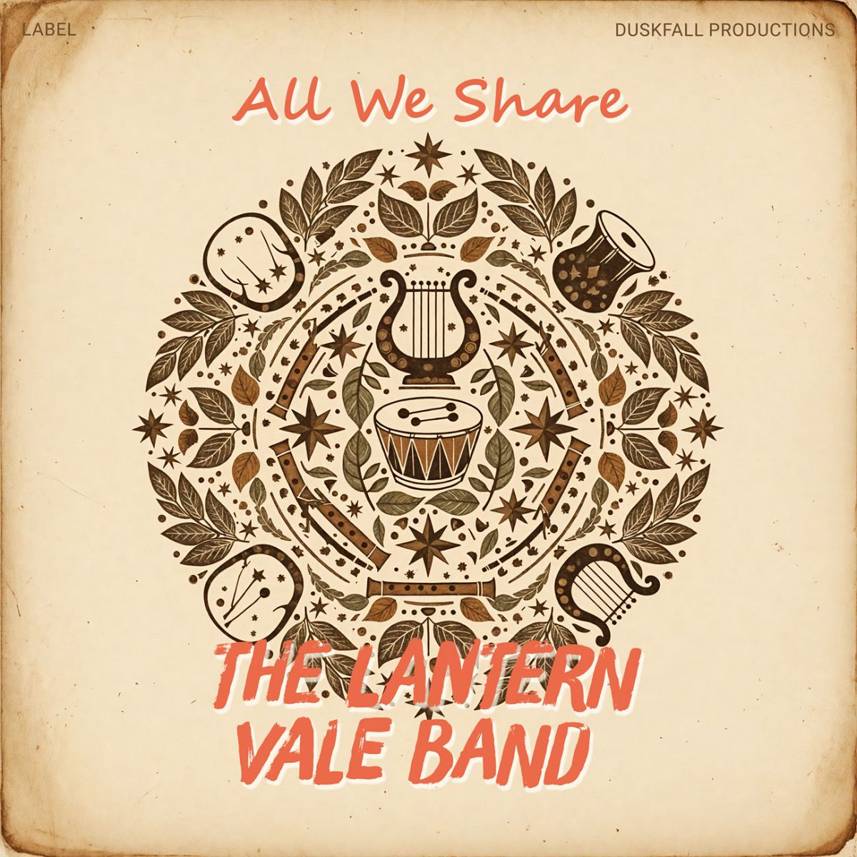 The most popular tags describing this Country & Acoustic premade album cover are nature, acoustic, folk, artistic, retro, and other keywords relevant to this premade cover are traditional, floral, music, leaves, decorative, intricate, mandala, ornate, instruments, Vintage, earthy, symmetrical, engraving, drum.