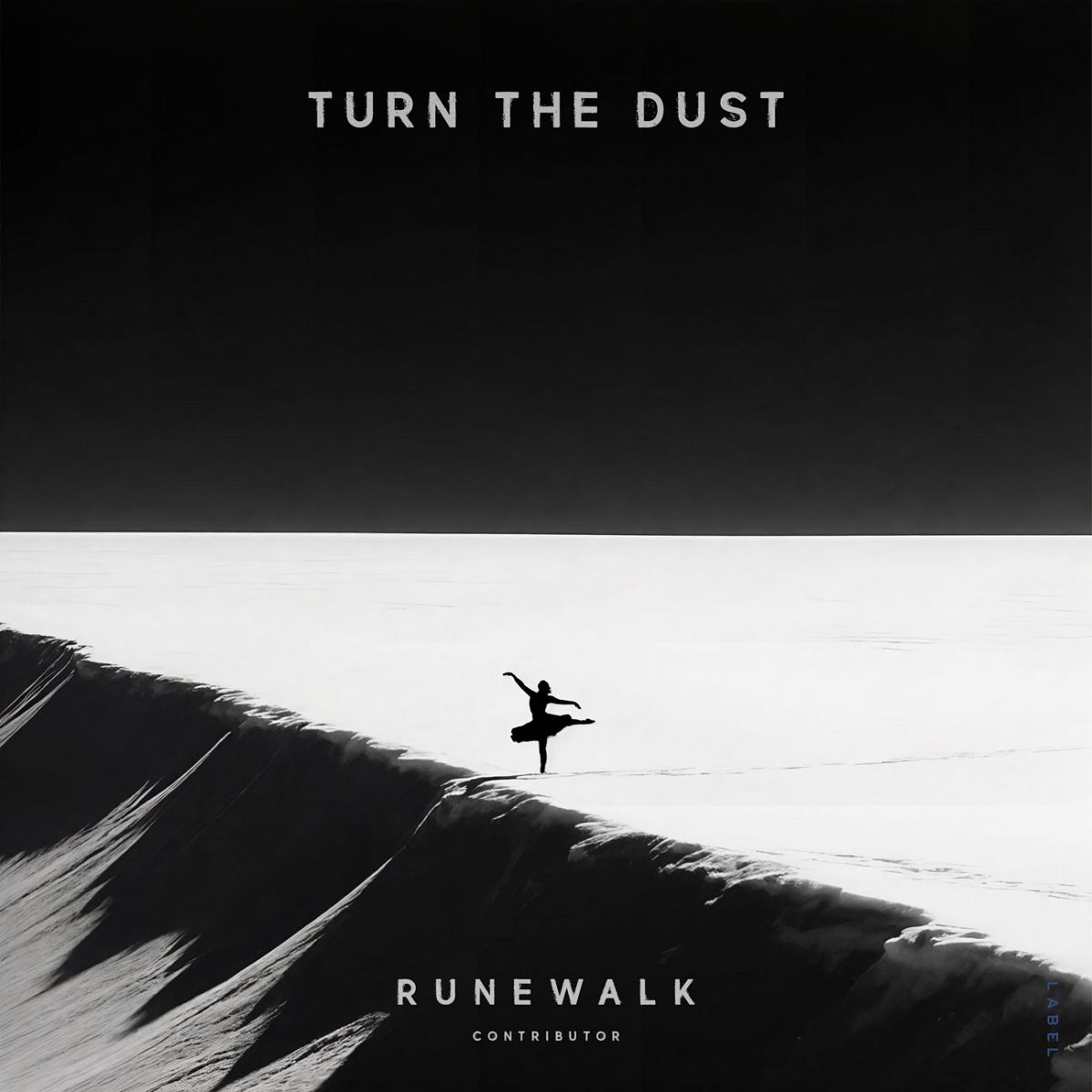 “A lone figure balances on a tightrope above a vast, dark landscape, creating a dramatic and surreal scene.”