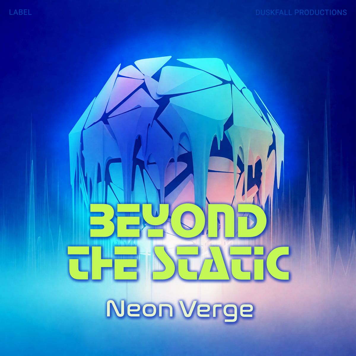 The most popular tags describing this Electronica & Ambient premade album cover are abstract, modern, artistic, surreal, neon, and other keywords relevant to this premade cover are futuristic, geometric, mysterious, digital, sphere, vibrant, glowing, ethereal, album cover, dynamic, imaginative, innovation, blue tones, soundwaves.