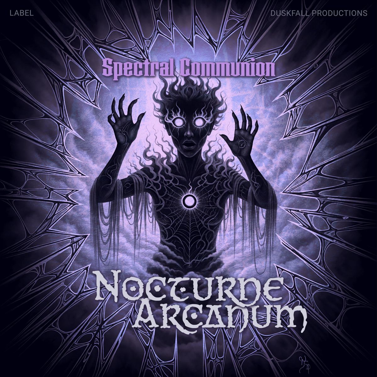 The most popular tags describing this Heavy Metal & Gothic Metal premade album cover are fantasy, purple, surreal, horror, mysterious, and other keywords relevant to this premade cover are mystical, glowing, darkness, eyes, hands, ethereal, energy, shadowy, supernatural, spectral, arcane, nocturne, entity, aura.