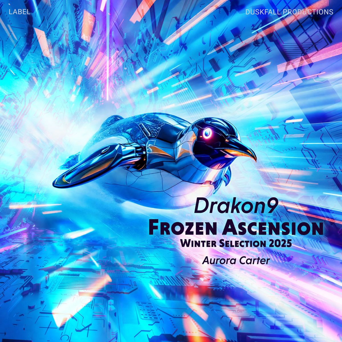The most popular tags describing this Dance & House premade album cover are abstract, futuristic, electronic, sci-fi, design, and other keywords relevant to this premade cover are digital, winter, vibrant, motion, snow, atmospheric, celestial, energy, neon lights, dynamic, aurora, iceberg, penguin, blue hues.
