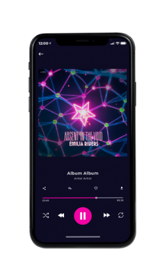 The most popular tags describing this Electronica & Ambient premade album cover are abstract, modern, purple, neon, futuristic, and other keywords relevant to this premade cover are sci-fi, geometric, vibrant, energetic, cosmic, electric, digital art, dynamic, luminous, network, visual, glowing lines, starburst.