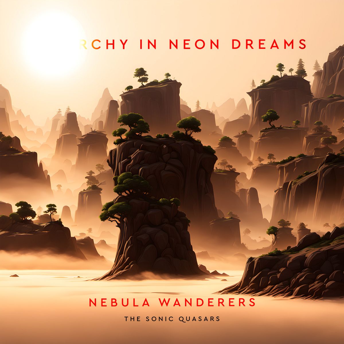 The most popular tags describing this Electronica & Ambient premade album cover are nature, fantasy, landscape, surreal, dreamy, and other keywords relevant to this premade cover are sunset, mountains, tranquil, serene, mystical, adventure, peace, atmospheric, ethereal, digital art, vast, imagination, floating islands, orange glow.