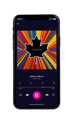 “Colorful rays emanate from a black maple leaf silhouette on a vibrant background.”