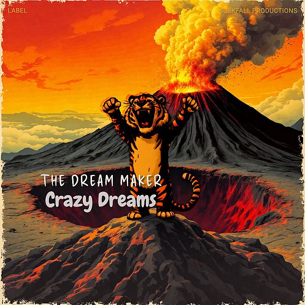 The most popular tags describing this Pop premade album cover are illustration, nature, bold, landscape, artwork, and other keywords relevant to this premade cover are clouds, orange, sunset, animal, smoke, adventure, power, wilderness, dramatic, intense, tiger, eruption, fiery, volcano.