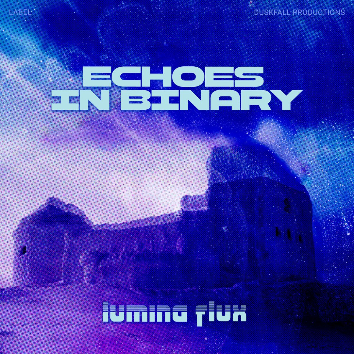 The most popular tags describing this Electronica & Ambient premade album cover are abstract, modern, blue, sky, landscape, and other keywords relevant to this premade cover are purple, night, clouds, neon, futuristic, art, design, digital, building, cosmic, glow, fortress, textured.