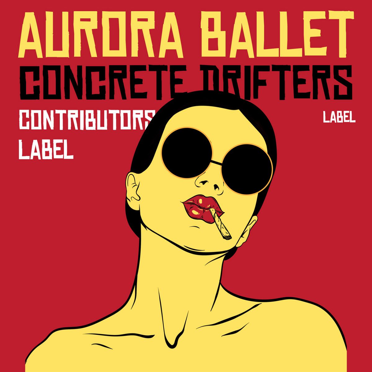 Tags: bold, sunglasses, red background, lipstick, illustration, portrait, pop art, cigarette, yellow tones, stylish, cool, graphic design, modern, edgy, artistic, fashion, retro, minimalist, chic, vibrant