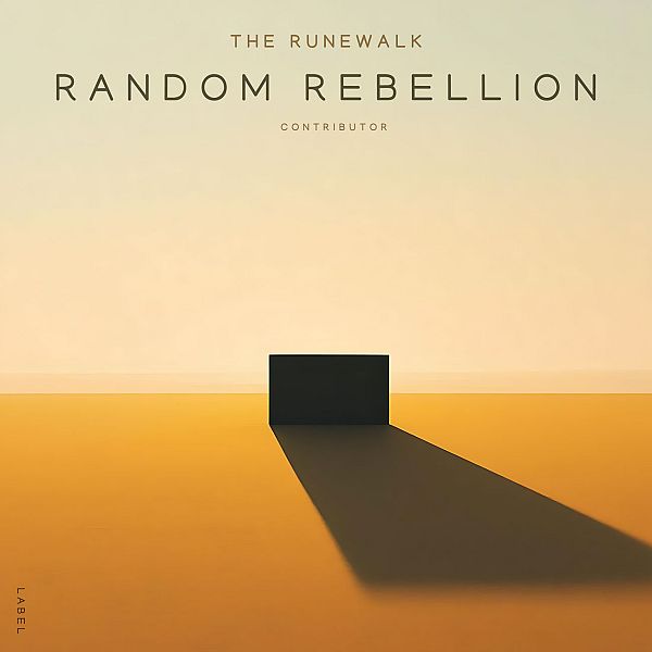 “A minimalist design with a black rectangle casting a long shadow on a gradient orange and beige background.”