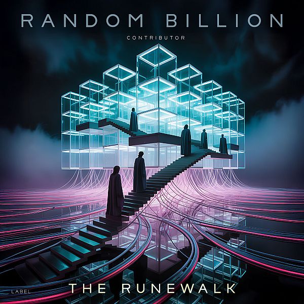 Tags: futuristic, neon, geometric, architecture, digital, surreal, mysterious, sci-fi, glowing, stairs, figures, technology, cube structure, modern, abstract, vivid, ethereal, dreamlike, purple light, otherworldly