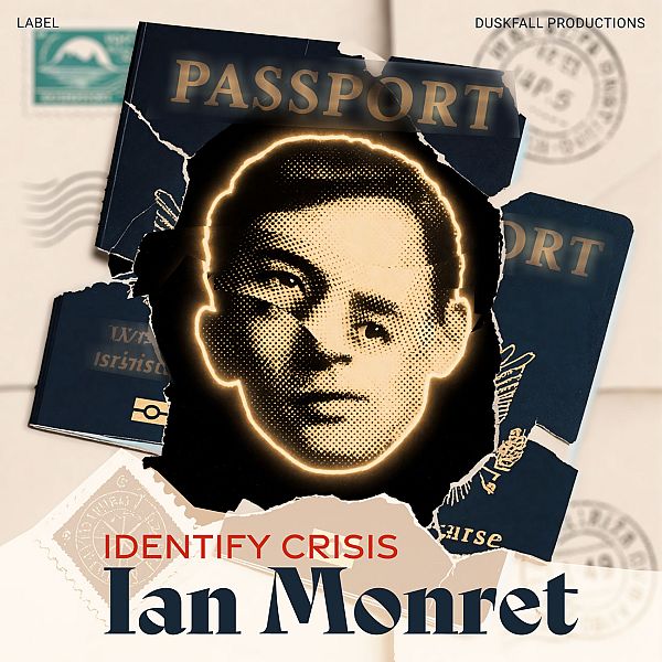“A stylized portrait of a person with torn passport and travel-themed background.”