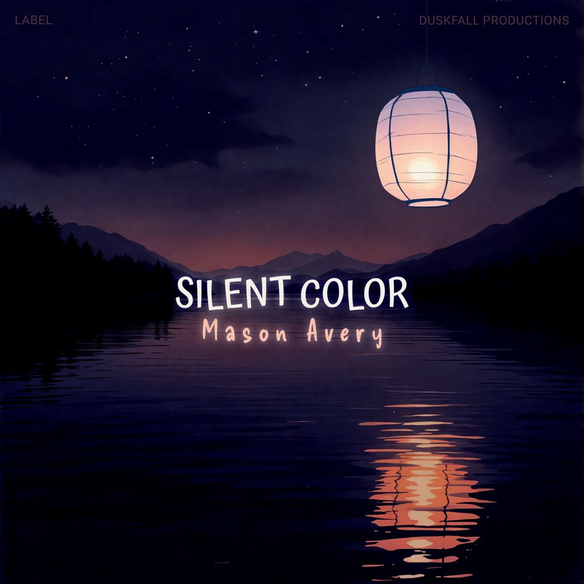 “A serene night scene with a glowing lantern reflecting on a calm lake, surrounded by silhouettes of distant hills.”