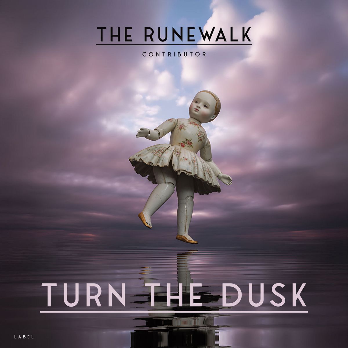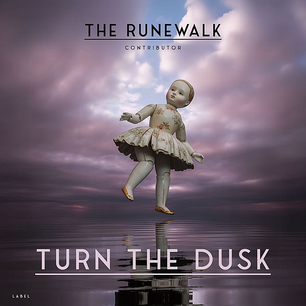 “A vintage doll floats above a reflective water surface with a dramatic, cloudy sky in the background.”