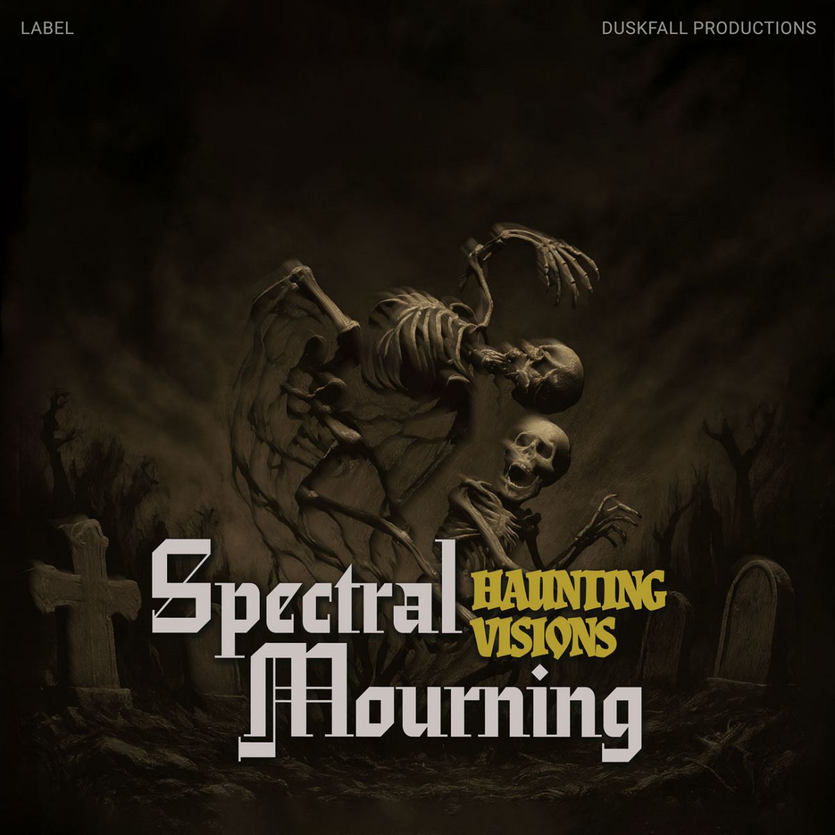 The most popular tags describing this Heavy Metal & Gothic Metal premade album cover are night, gothic, mysterious, skeleton, darkness, and other keywords relevant to this premade cover are shadows, eerie, atmospheric, graveyard, bones, macabre, spectral, ghostly, sinister, haunting, chilling, moonlit, tombstones, deathly.