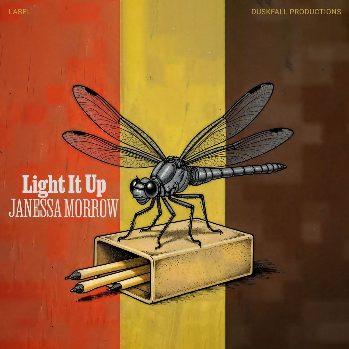 The most popular tags describing this Country & Acoustic premade album cover are illustration, colorful, artwork, surreal, contrast, and other keywords relevant to this premade cover are design, wings, texture, insect, unique, surrealism, dragonfly, muted colors, red stripe.