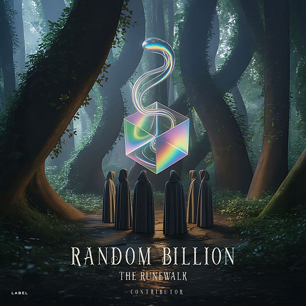 Tags: Forest, mystery, cube, cloaked figures, fog, enchantment, surreal, gathering, otherworldly, mystical, digital art, holographic, glowing, fantasy, atmosphere, trees, shadows, arcane, ambient, twilight, progressive rock