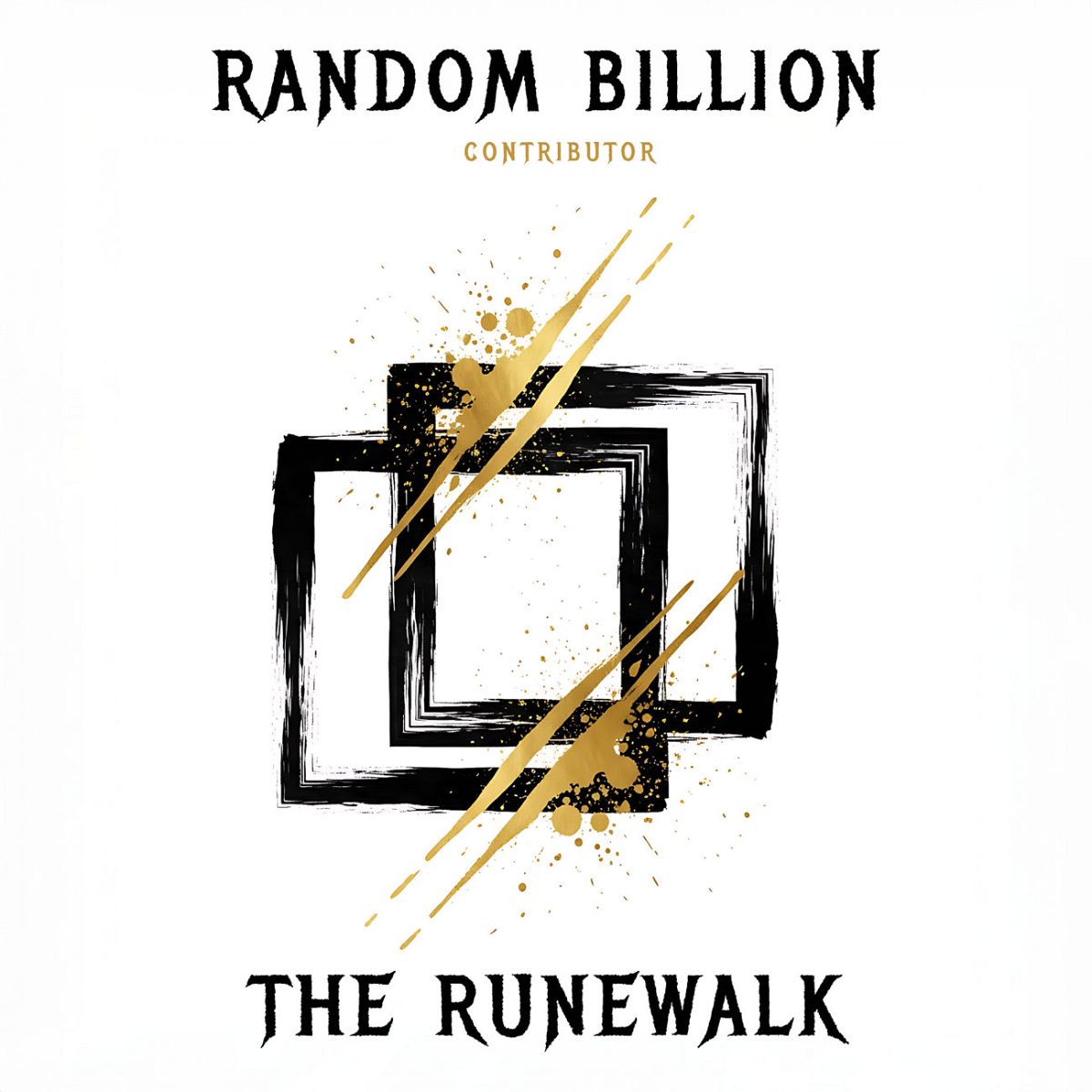 “Abstract design with overlapping black rectangles and gold splashes, featuring diagonal gold streaks.”