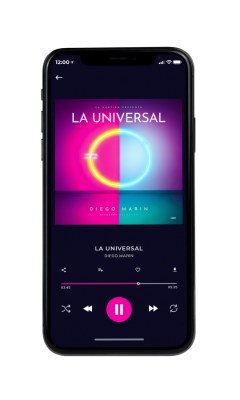 Tags: electronica, edm, futuristic, neon, 3d, person, walking, alone, disk, circle, light, purple, blue, pink, techno, mountains, new age