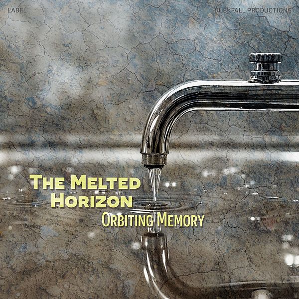 “A chrome faucet dripping water against a textured, cloudy background.”