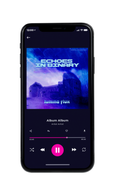 The most popular tags describing this Electronica & Ambient premade album cover are abstract, modern, blue, sky, landscape, and other keywords relevant to this premade cover are purple, night, clouds, neon, futuristic, art, design, digital, building, cosmic, glow, fortress, textured.